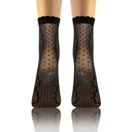 Ponožky WZ 11 PIKOT od značky Sesto Senso jsou kvintesencí ženského stylu. Jsou vyrobené z průhledné síťoviny, zdobené jemným vlnkovým vzorem s tečkami po stranách, a působí tak výjimečně lehce a elegantně. Půvabný volánek na lemu jim dodává dívčí šarm a skvěle se hodí ke každodennímu i náročnějšímu oblečení. Díky elastickému materiálu dokonale přilnou k noze a zajistí pohodlné nošení po celý den.