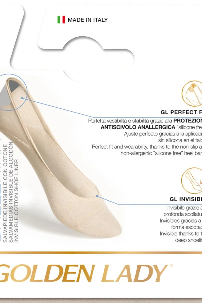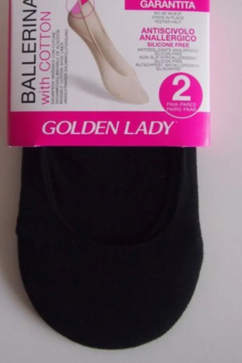 Velice pohodlné ponožky balerínky značky Golden Lady. Jsou tenké a ušité z kvalitní bavlny s přídavkem lycry. Silikonový pásek na patě zabraňuje sesouvání ponožky. Ideální do balerín.