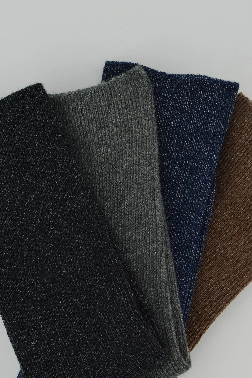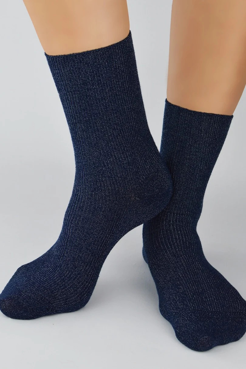 Dámské ponožky z jemného žebrování, s lurexem. Pohodlí při nošení zajišťují bezešvé spoje a volný lem.