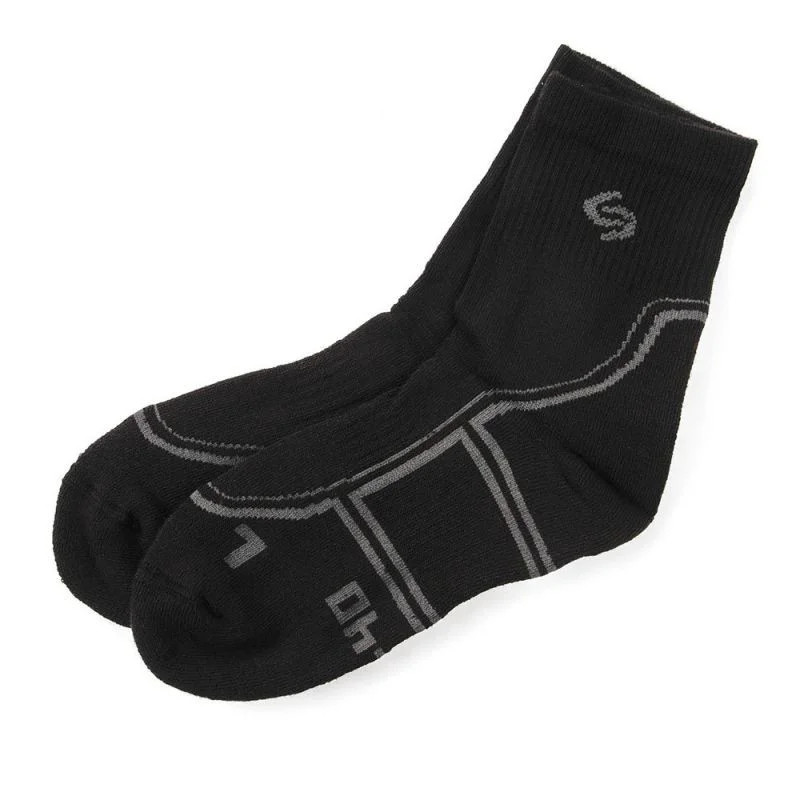 Ponožky pro nordic walking a trekking. Třívrstvé tvarované vnitřní froté tlumí nárazy a chrání citlivé části chodidla před odřením a zraněním. Jedinečná inovativní konstrukce vláken z příze COOLMAX® zajišťuje maximální pohodlí díky udržování správné teploty a odvodu vlhkosti. Noha je tak v kontaktu s měkkou, vždy suchou pleteninou. Pokud ponožky zmoknou, jejich doba schnutí je výrazně kratší než u bavlněných ponožek, což je důležité pro použití v extrémních podmínkách. Ponožky jsou přizpůsobeny anatomickému tvaru levé (L) a pravé (R) nohy pomocí vhodně tvarované froté části. LYCRA® v celém výrobku zajišťuje vynikající přilnavost k noze. Elastický pásek na středu chodidla zabraňuje pohybu ponožky při pohybu. Vhodně tvarovaný úplet na patě (tvar "Y") dokonale přilne k noze a stabilizuje ponožku. Příčné pruhy usnadňují položení ponožky na ohyb nohy. Nenosná část ponožky nad chodidlem je tenčí, což spolu s účinkem příze COOLMAX® dokonale urychluje odvod vlhkosti. Pohodlí doplňuje plochý, měkký šev "Rosso" nad prsty. Obvaz SANITIZED® má účinné antibakteriální, protiplísňové a protizápachové vlastnosti.