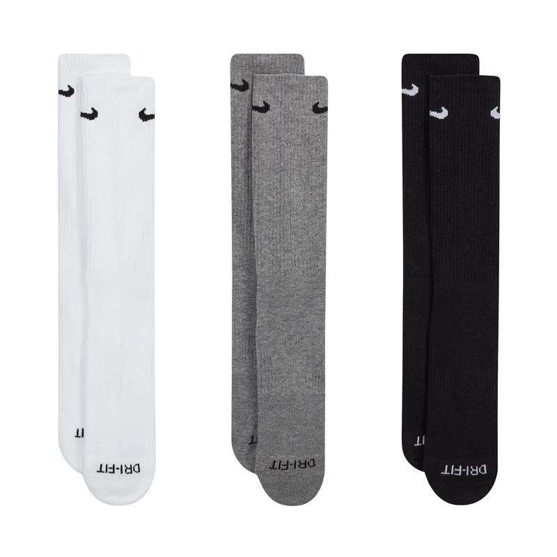 Nike Everyday Plus Cushioned 3 páry bílá, šedá, černá SX6888 964. Tyto ponožky Nike v délce 1/3 lýtka vám pomohou udržet pohodlí při fyzické aktivitě. Ergonomický design a použití odolných, pružných materiálů. Technologie Dri-FIT zajišťuje prodyšnost a odvádí vlhkost. Speciální popruhy těsně přiléhají ke klenbě chodidla a poskytují oporu. Polstrování v oblasti přední části chodidla a paty. Horní manžety zabraňují vyhrnování ponožek. Horní panely jsou vyrobeny z jemnější příze pro lepší ventilaci. Zesílené oblasti paty a prstů zvyšují odolnost. 3 páry jsou součástí balení. Materiál: 62-69 % bavlna, 29-36 % polyester, 2 % spandex.