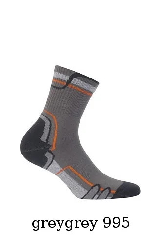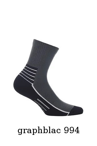 Spodní část z froté materiálu. Ploché švy, beztlakový okraj, elastický pásek a zesílená konstrukce paty i prstů. Ponožky jsou ideální pro aktivní osoby. Díky vláknům Prolen Siltex jsou ponožky velmi pohodlné během fyzické námahy a zabraňují pocení se chodidla. Originální vzory skvěle komponují z aktivním stylem života.