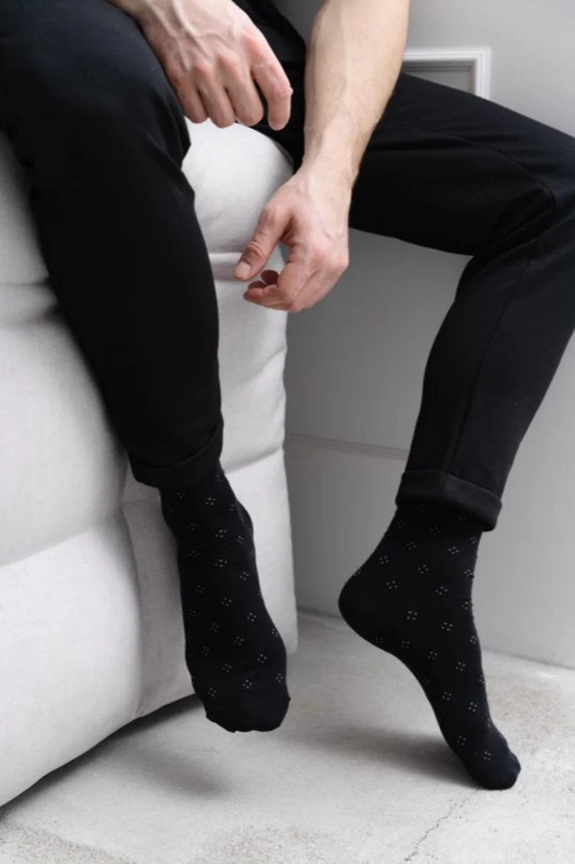 Zobrazit popis > Jemné vzorované pánské ponožky k obleku.
