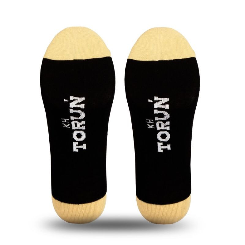 skarpety KHT Toruń – Gold Black Eleganckie połączenie czerni i złota z wyraźnym klubowym akcentem! Skarpety GKHT Toruń– Gold Black to stylowy dodatek dla kibiców, którzy cenią sobie zarówno klubową identyfikację, jak i elegancki, stonowany wygląd. Czarne tło przełamane złotymi akcentami oraz wyraźnym symbolem KHT Toruń nadaje skarpetom nowoczesny i prestiżowy charakter. Wysokiej jakości dzianina zapewnia komfort noszenia na co dzień, a dopasowany krój sprawia, że skarpety doskonale układają się na stopie. Główne cechy: Klubowy motyw: Wyraźny herb KHT Toruń podkreśla przynależność kibicowską. Kolorystyka Gold Black: Eleganckie połączenie czerni i złota nadaje skarpetom wyjątkowy, nowoczesny wygląd. Wysoki komfort użytkowania: Miękka, elastyczna dzianina zapewnia wygodę podczas codziennego noszenia. Uniwersalny styl: Idealne zarówno na co dzień, jak i podczas meczów oraz wydarzeń sportowych. Stylowe skarpety KHT Toruń w wersji Gold Black to doskonały spos