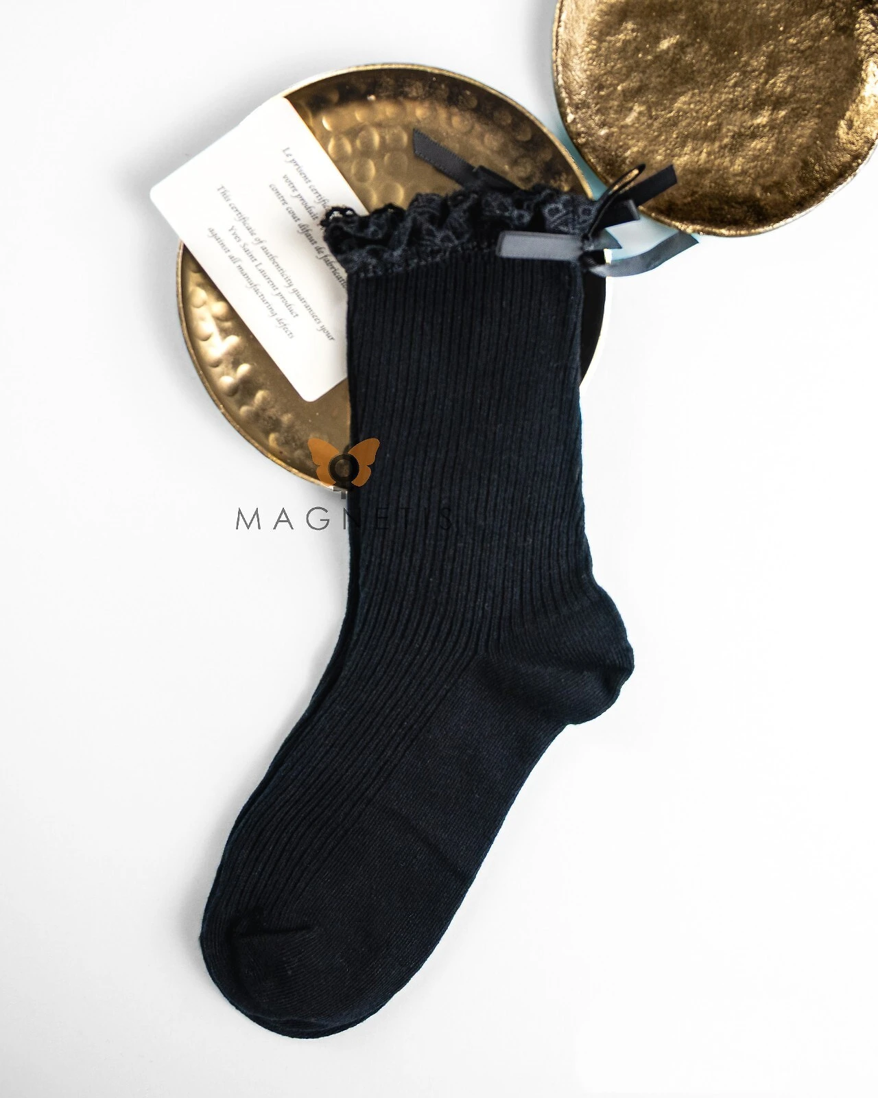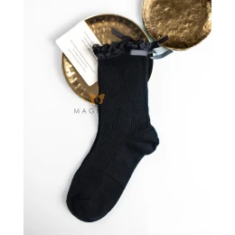 - žebrování zakončené krajkovým volánkem a saténovou mašlí