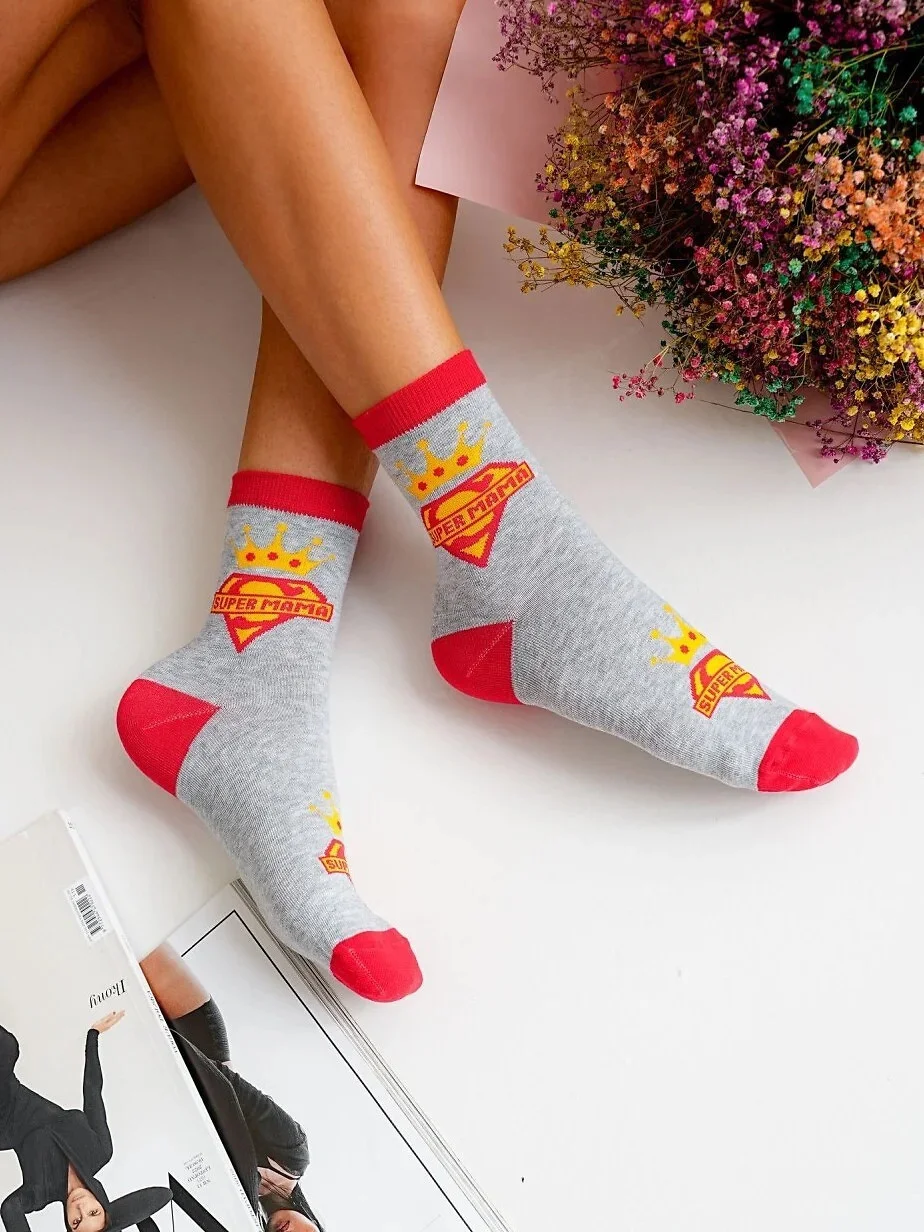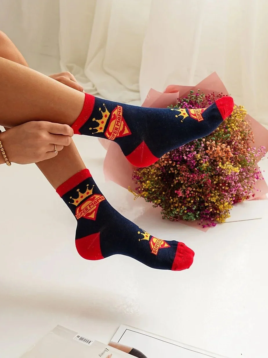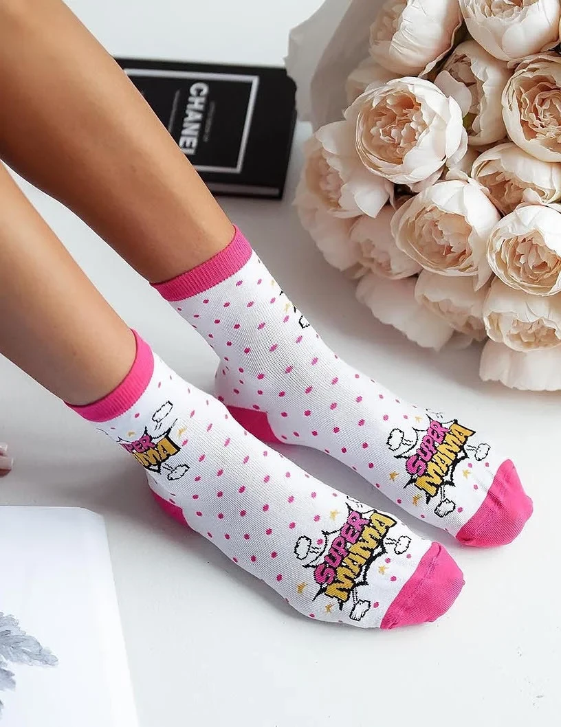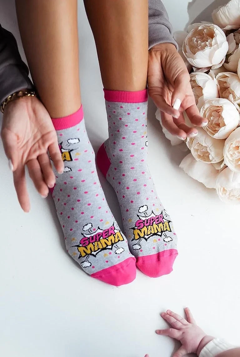 - zdobené barevným vzorem s nápisem SUPER MAMA