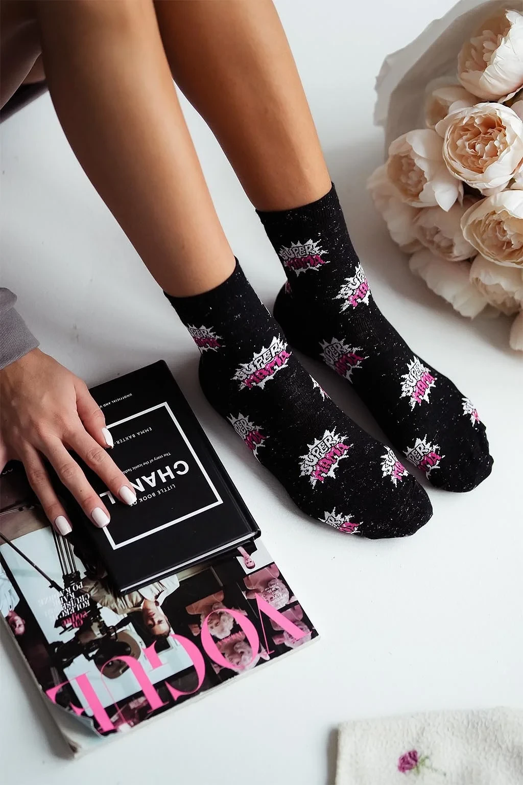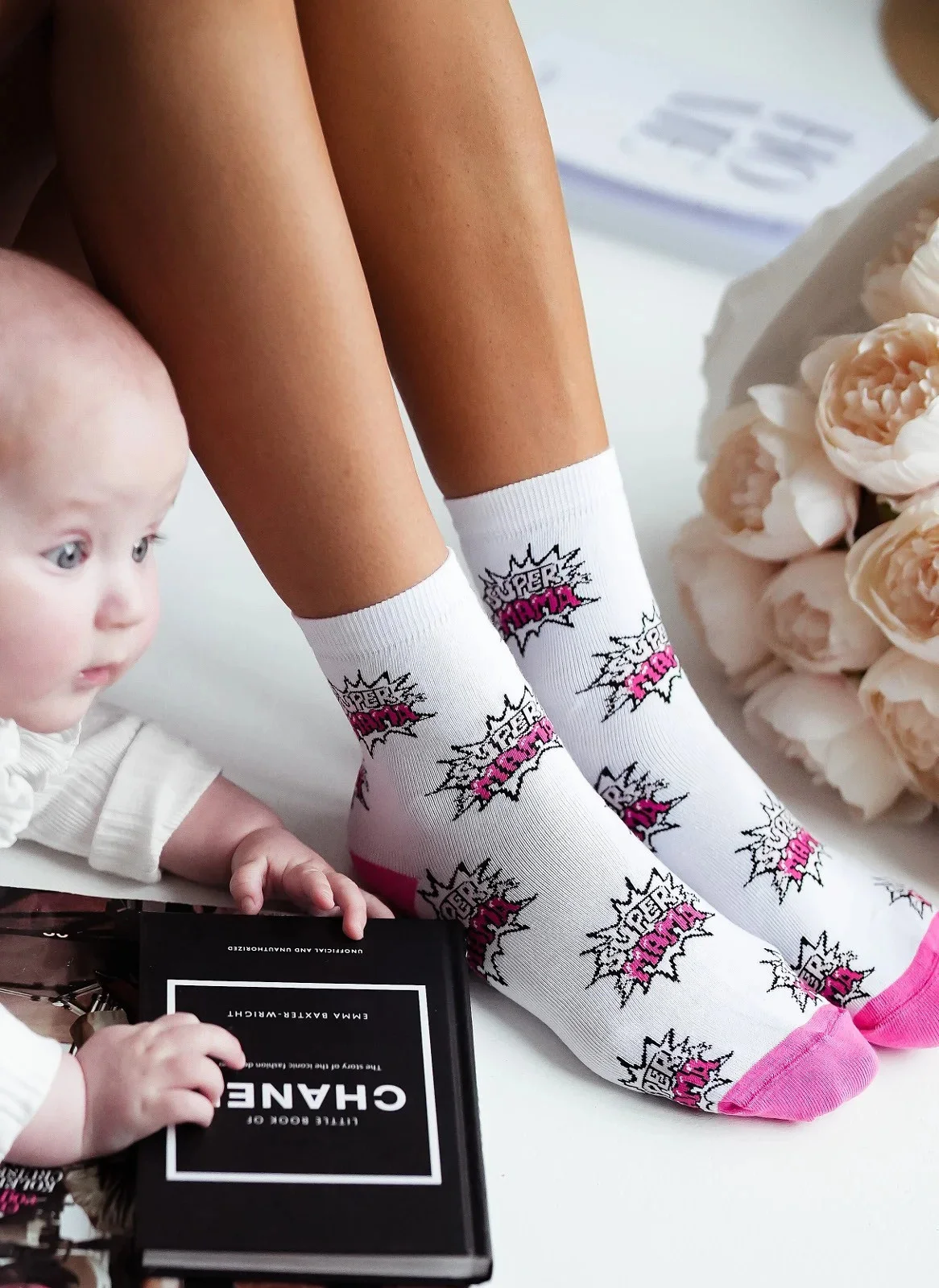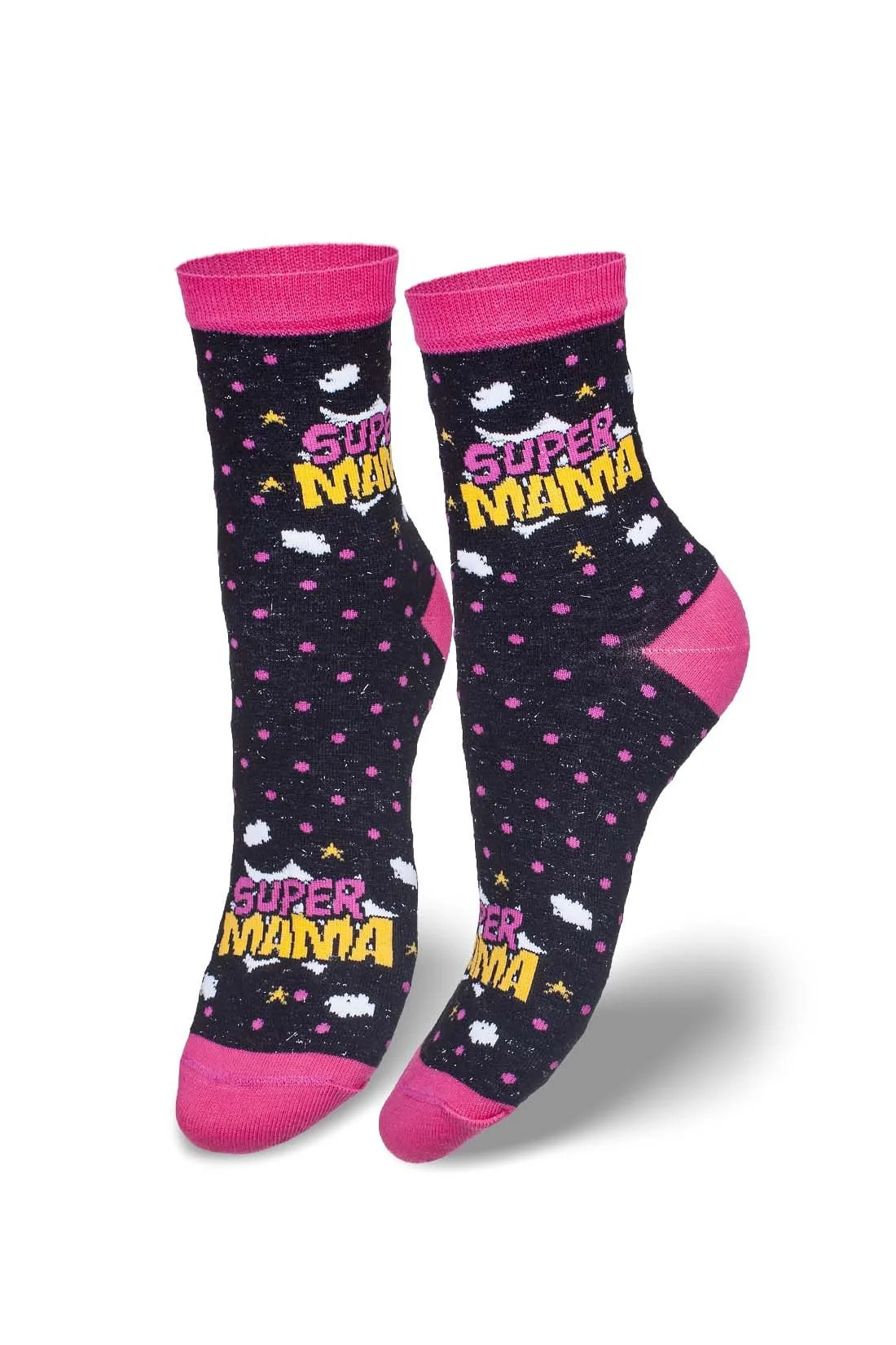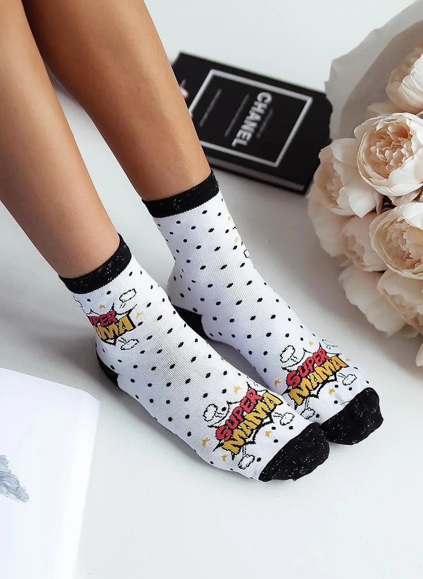 - zdobené barevným vzorem s nápisem SUPER MAMA
