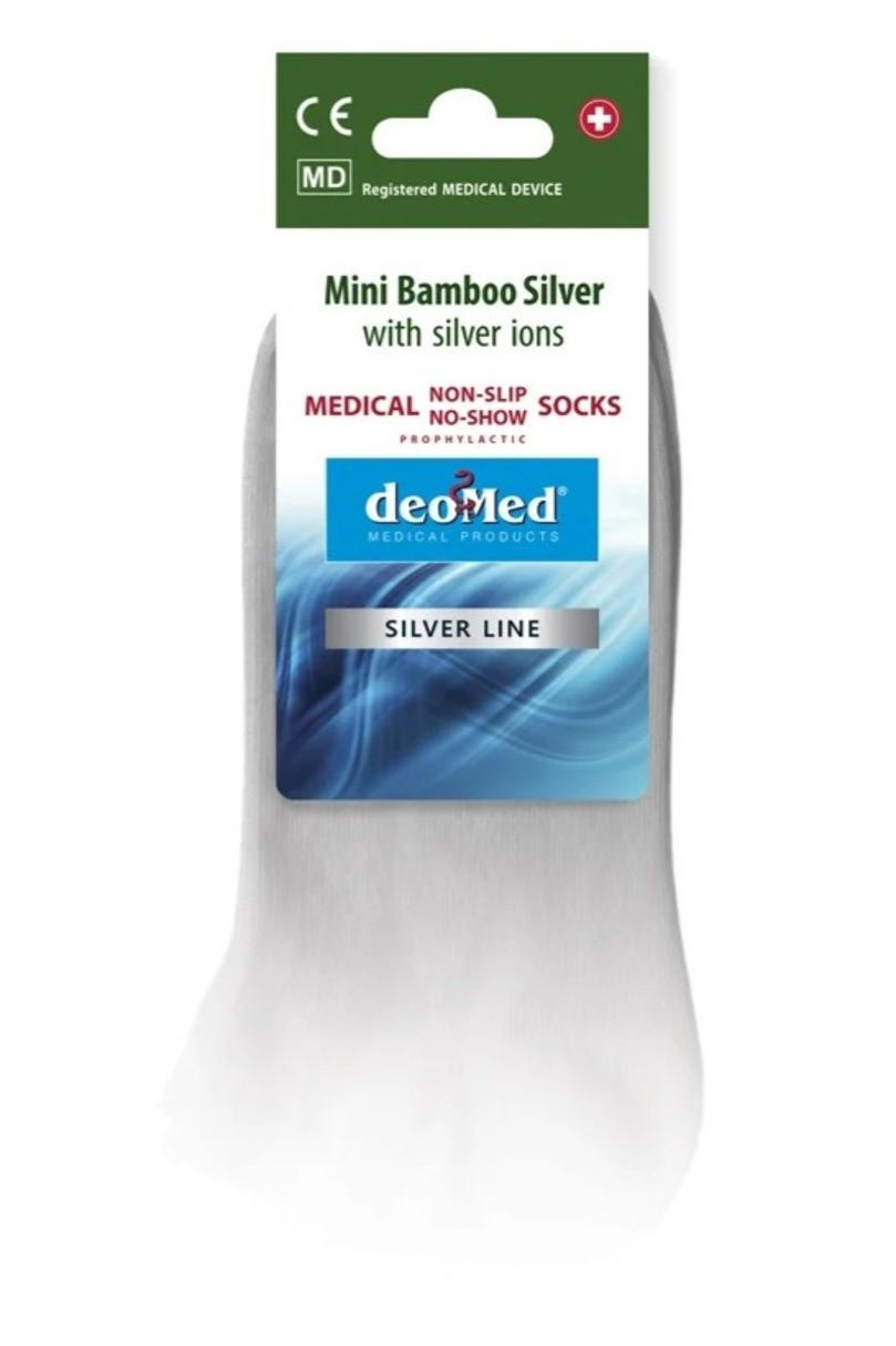 Protiskluzové ponožky MINI BAMBOO SILVER jsou pohodlné a praktické ponožky pro každodenní nošení, určené pro celodenní nošení. Díky vysokému obsahu bavlny jsou měkké, příjemné k pokožce a dobře se přizpůsobí noze. Přídavek polyamidu zvyšuje odolnost materiálu, zatímco elastan zajišťuje pružnost a lepší přilnavost.