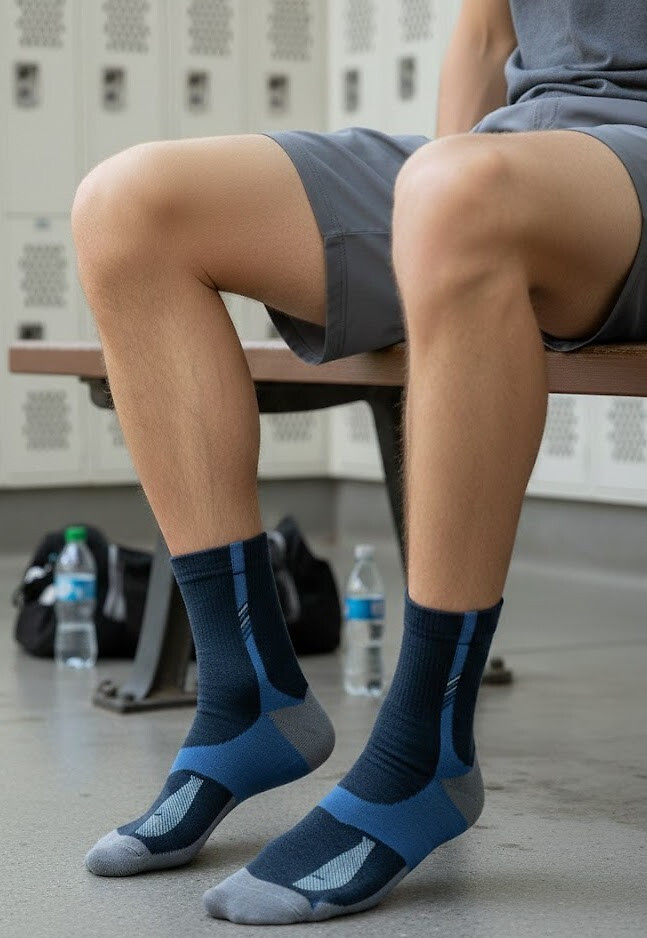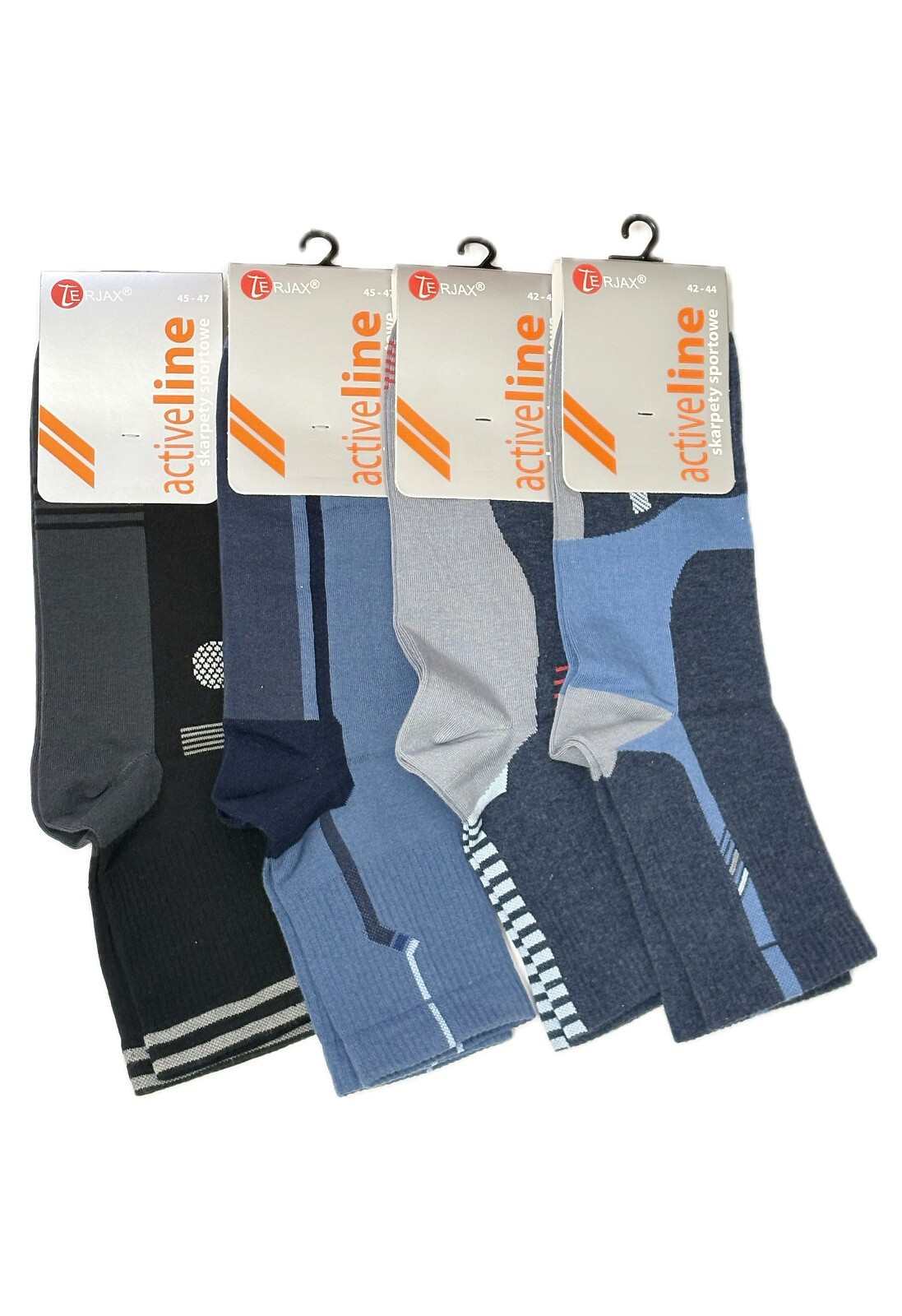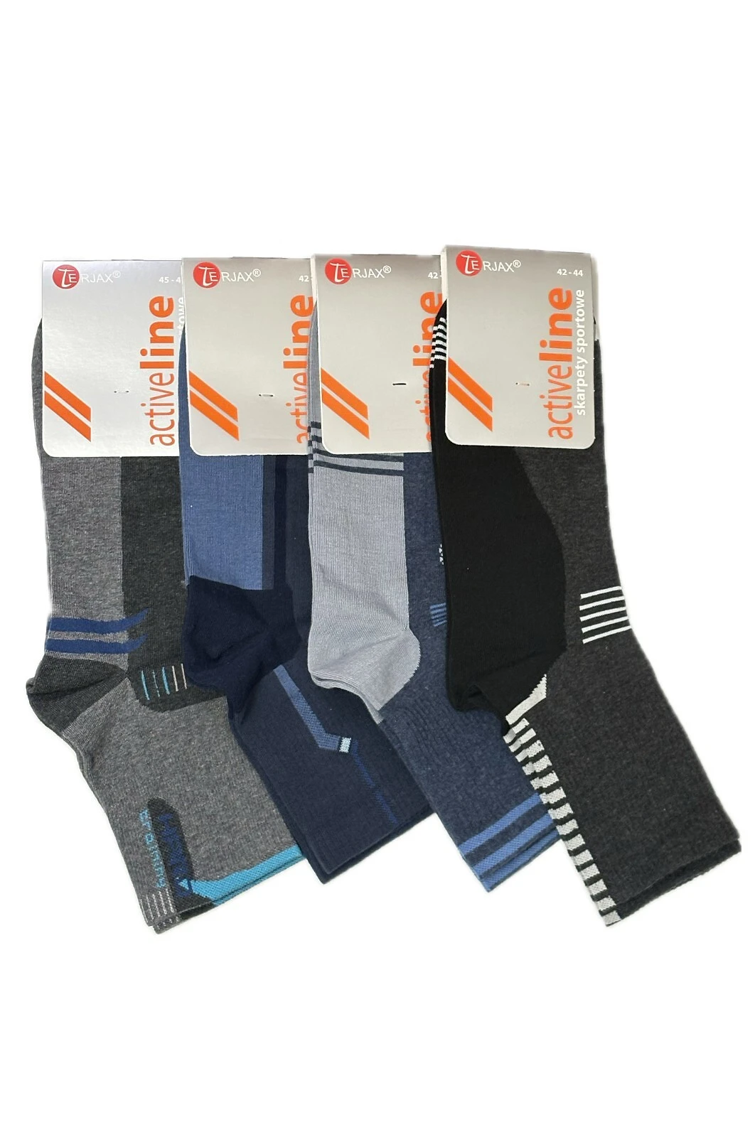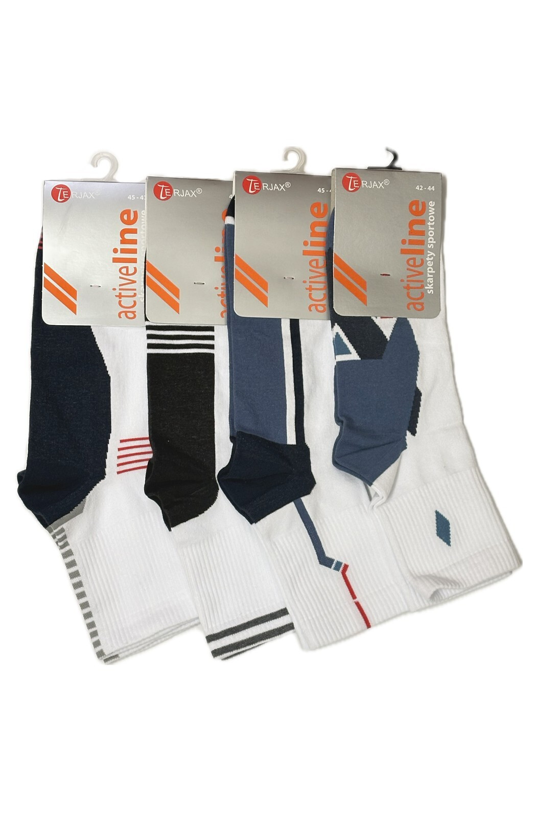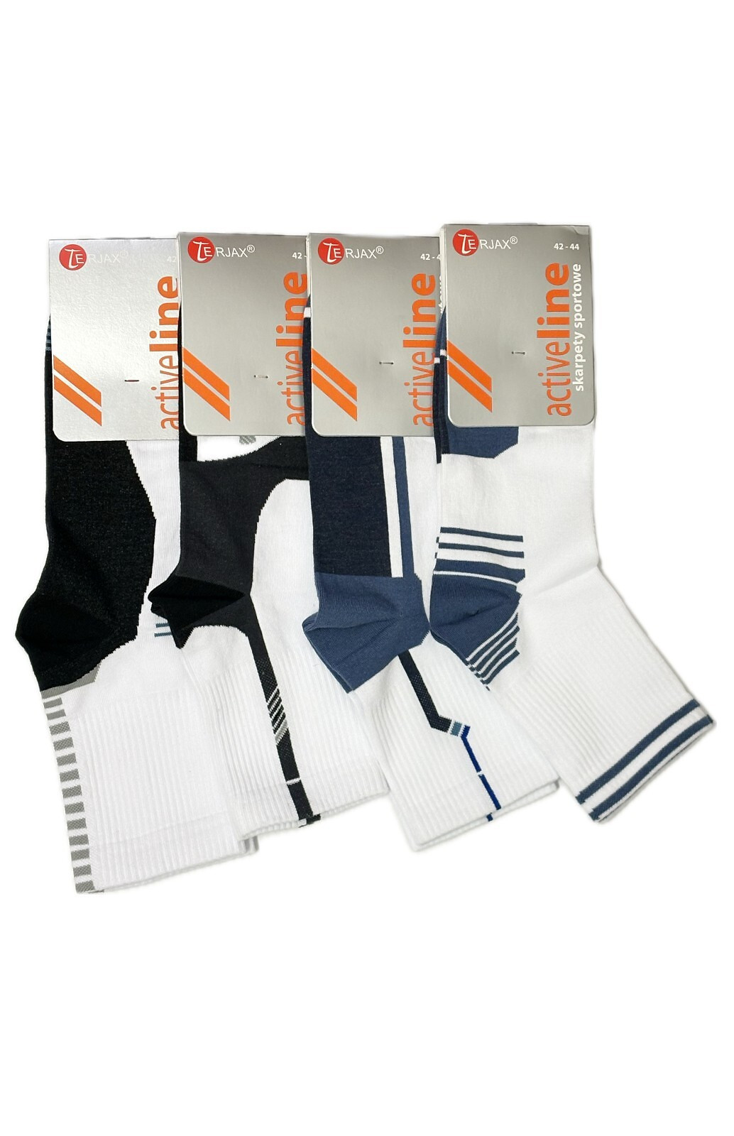 Ponožky obsahují přídavek pružných přízí, a proto se dokonale přizpůsobují chodidlu. Model má ploché švy, zesílené špičky a paty a lem, který při nošení netlačí. Dostupné barvy, které jsou vybírány náhodně: bílá, šedá, grafitová, džínová - se vsadkami v kontrastních barvách, nebo hladká bílá a černá.