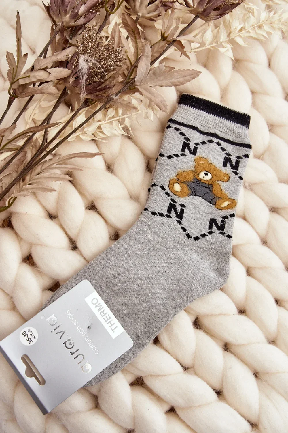 Teplé dámské ponožky ideální pro chladné dny. Model s nášivkou v podobě medvídka. Díky lehkému švu dokonale přilnou k noze. Rozhodně byste je měli mít!