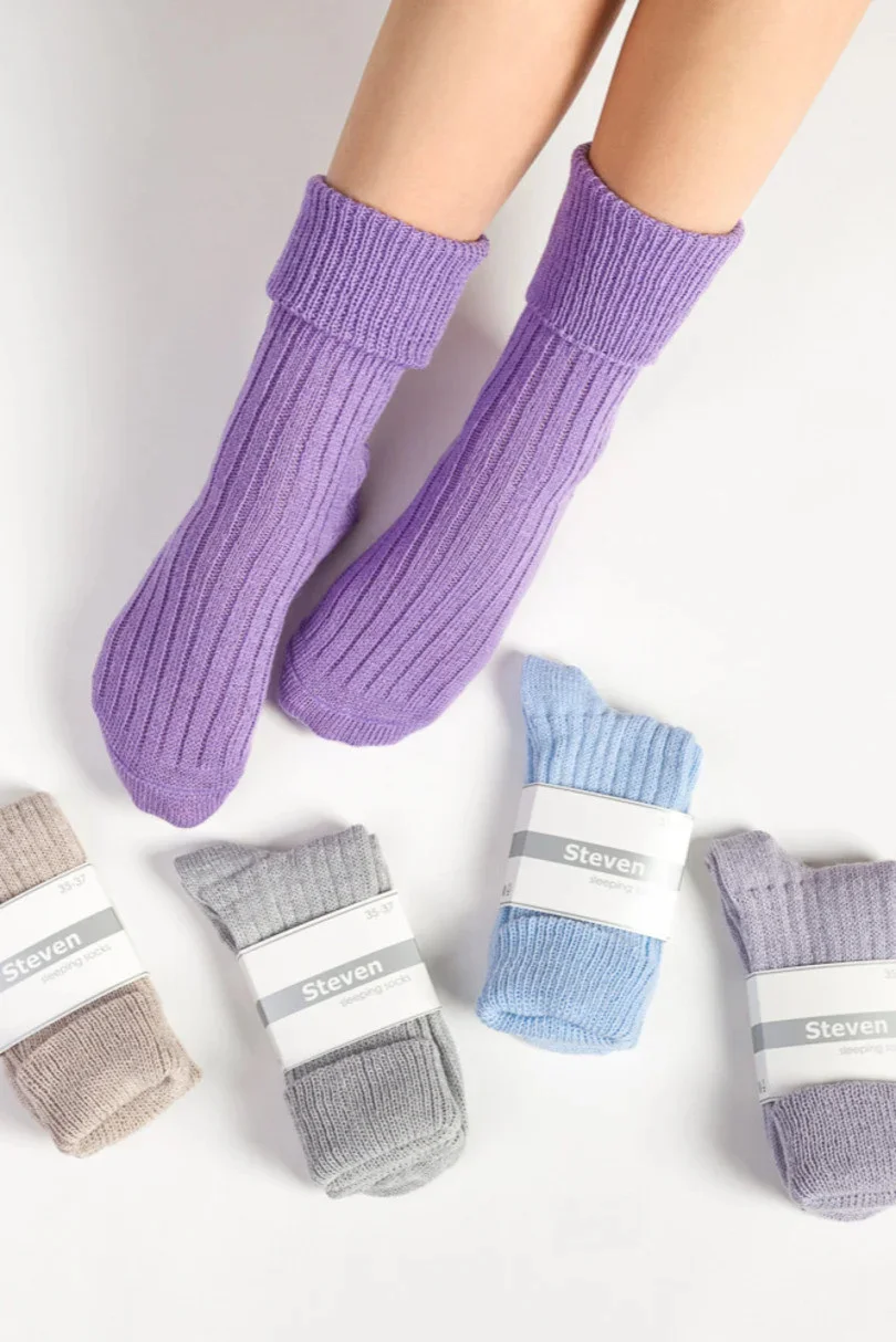 Měkké dámské ponožky určené na spaní v chladné podzimní a zimní noce. Jsou dostatečně jsouhé, teplé a velice pohodlné. Mají nestahující lem.