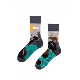 Ponožky jsou ozdobené zábavným vzorem. Model má vytvarované chodidlo a lem, který při nošení netlačí.