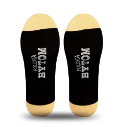 skarpety Polonia Bytom – Gold Black Eleganckie połączenie czerni i złota z wyraźnym klubowym akcentem! Skarpety Polonia Bytom – Gold Black to stylowy dodatek dla kibiców, którzy cenią sobie zarówno klubową identyfikację, jak i elegancki, stonowany wygląd. Czarne tło przełamane złotymi akcentami oraz wyraźnym symbolem Polonia Bytom nadaje skarpetom nowoczesny i prestiżowy charakter. Wysokiej jakości dzianina zapewnia komfort noszenia na co dzień, a dopasowany krój sprawia, że skarpety doskonale układają się na stopie. Główne cechy: Klubowy motyw: Wyraźny herb Polkonia Bytom podkreśla przynależność kibicowską. Kolorystyka Gold Black: Eleganckie połączenie czerni i złota nadaje skarpetom wyjątkowy, nowoczesny wygląd. Wysoki komfort użytkowania: Miękka, elastyczna dzianina zapewnia wygodę podczas codziennego noszenia. Uniwersalny styl: Idealne zarówno na co dzień, jak i podczas meczów oraz wydarzeń sportowych. Stylowe skarpety Polonia Bytom w wersji Gold Black to