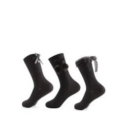 Każda para wyróżnia się efektownym, wypukłym wzorem lub subtelnym prążkiem, a dodatkowe ozdoby – takie jak pompony, koronka lub serduszka – dodają im uroku i wyjątkowego charakteru. Skarpetki dostępne są w klasycznym kolorze czarnym, co sprawia, że świetnie komponują się z każdą stylizacją – zarówno elegancką, jak i casualową.EAN čárové kódy zboží jsou: