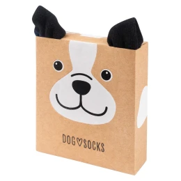 Skarpetki bawełniane z motywem piesków, zapakowane w efektowne pudełko prezentowe. Skład surowcowy: 80% bawełna, 15% poliamid, 5% elastan.