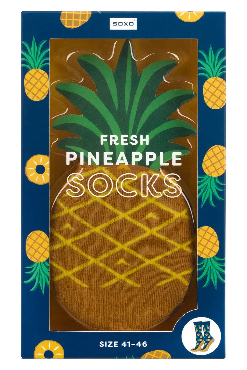 Elegantní ponožky jsou vyrobeny z vysoce kvalitního materiálu, jejich jedinečný designór bude svěžím doplňkem vašeho stylingu. Super nápad na dárek pro milovníky ananasu. Složení: 80% bavlna, 15% polyamid, 5% elastan