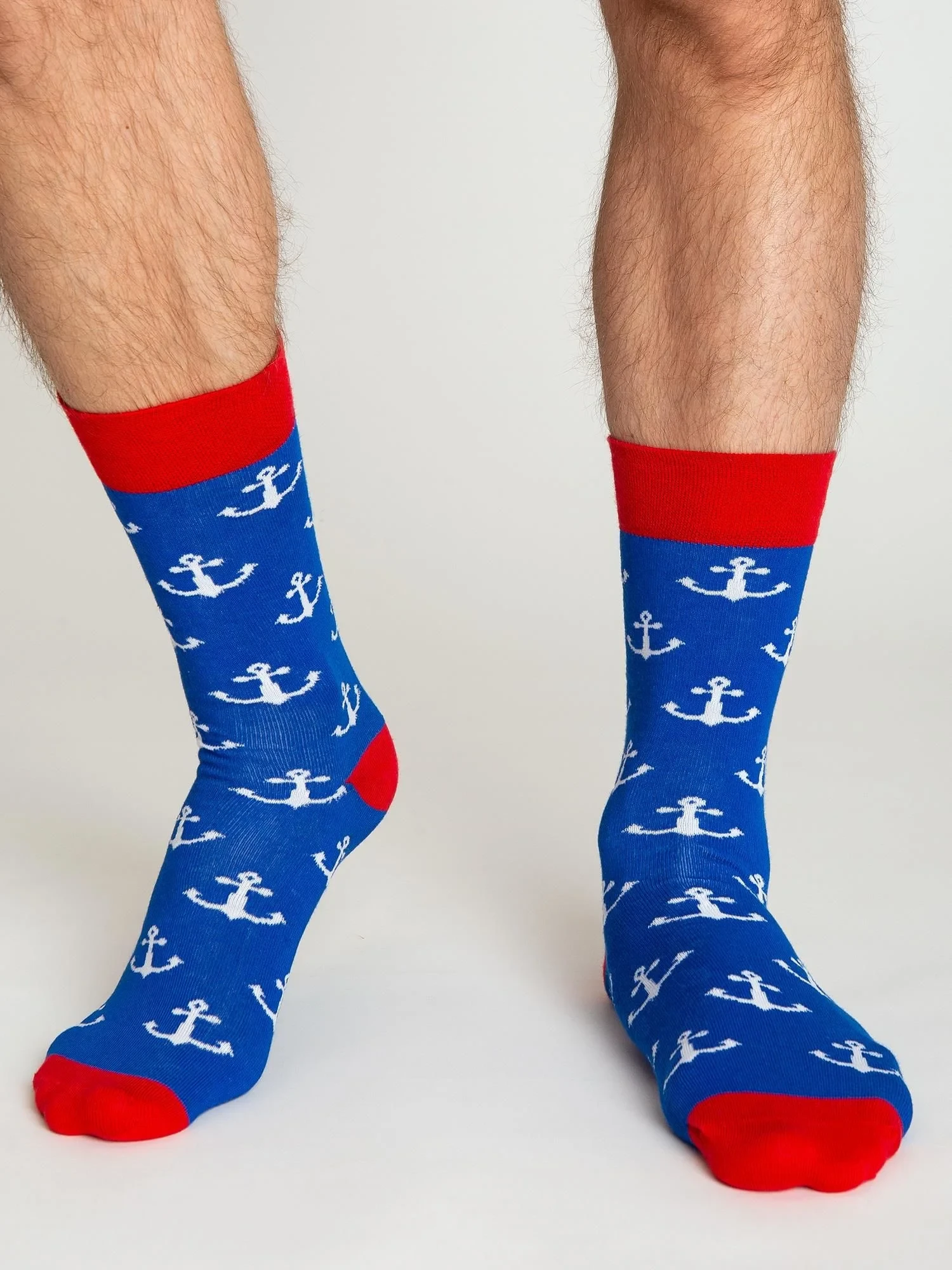 Pánské bavlněné vzorované ponožky v tmavě modré barvě.