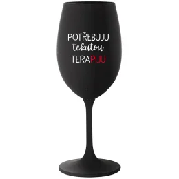 POTŘEBUJU TEKUTOU TERAPIJU - černá sklenice na víno 350 ml