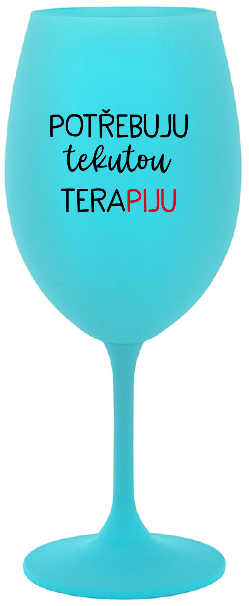 POTŘEBUJU TEKUTOU TERAPIJU - tyrkysová sklenice na víno 350 ml