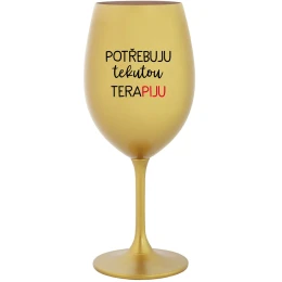 POTŘEBUJU TEKUTOU TERAPIJU - zlatá sklenice na víno 350 ml
