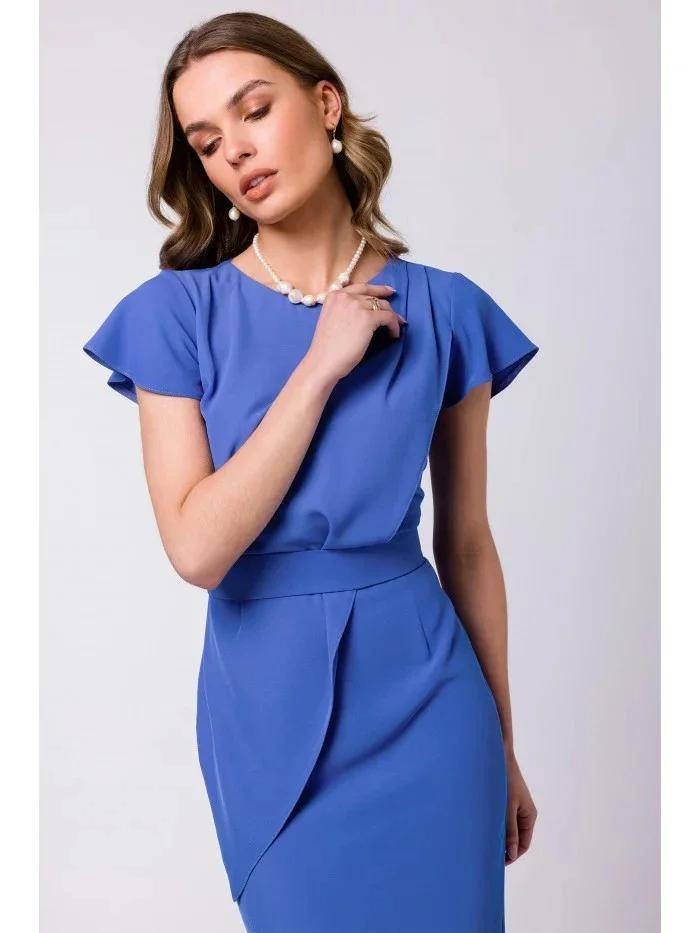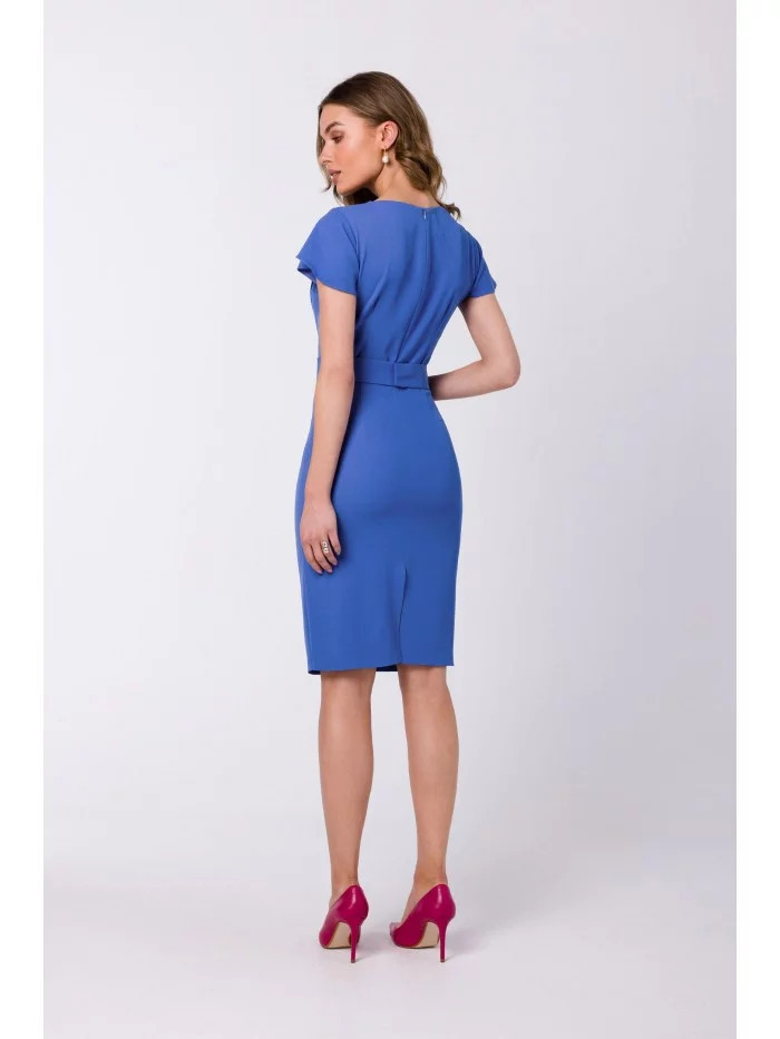 Pouzdrové šaty s páskem S336 modré - Stylove