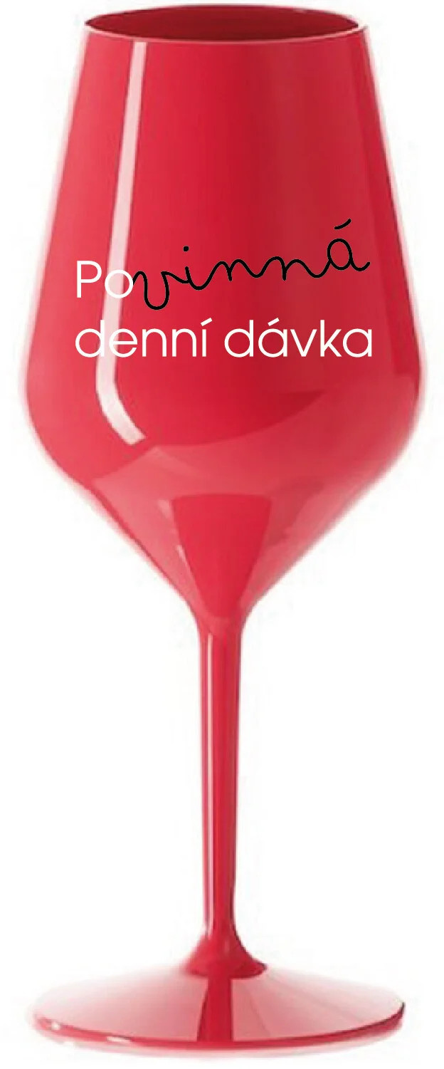 POVINNÁ DENNÍ DÁVKA - červená nerozbitná sklenice na víno 470 ml