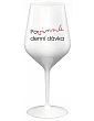 Nerozbitná zelená vinná sklenice s motivem POVINNÁ DENNÍ DÁVKA je skvělá na zahradu, pláž, výlet, piknik a parádu udělá i při kempování. Jelikož je vyrobená z kvalitního polykarbonátu je de facto nerozbitná. Je to luxusní kousek, s nímž si víno můžete vychutnat prostě kdekoliv. Mají ergonomický tvar, který příjemně padne do ruky a protože je lehká, usnadňuje to její přenášení. Je snadno skladovatelná a lehce se čistí. Díky svému designu si s ní můžete vychutnat doopravdy kdekoliv bezproblémové pití výborného vína. Materiál PP. Vyrobené s láskou v ČR