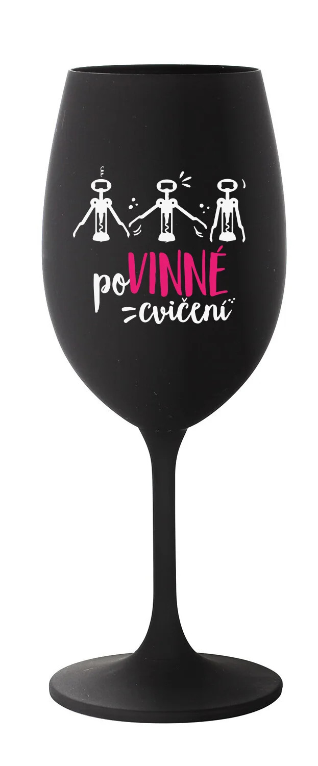 POVINNÉ CVIČENÍ - černá sklenice na víno 350 ml