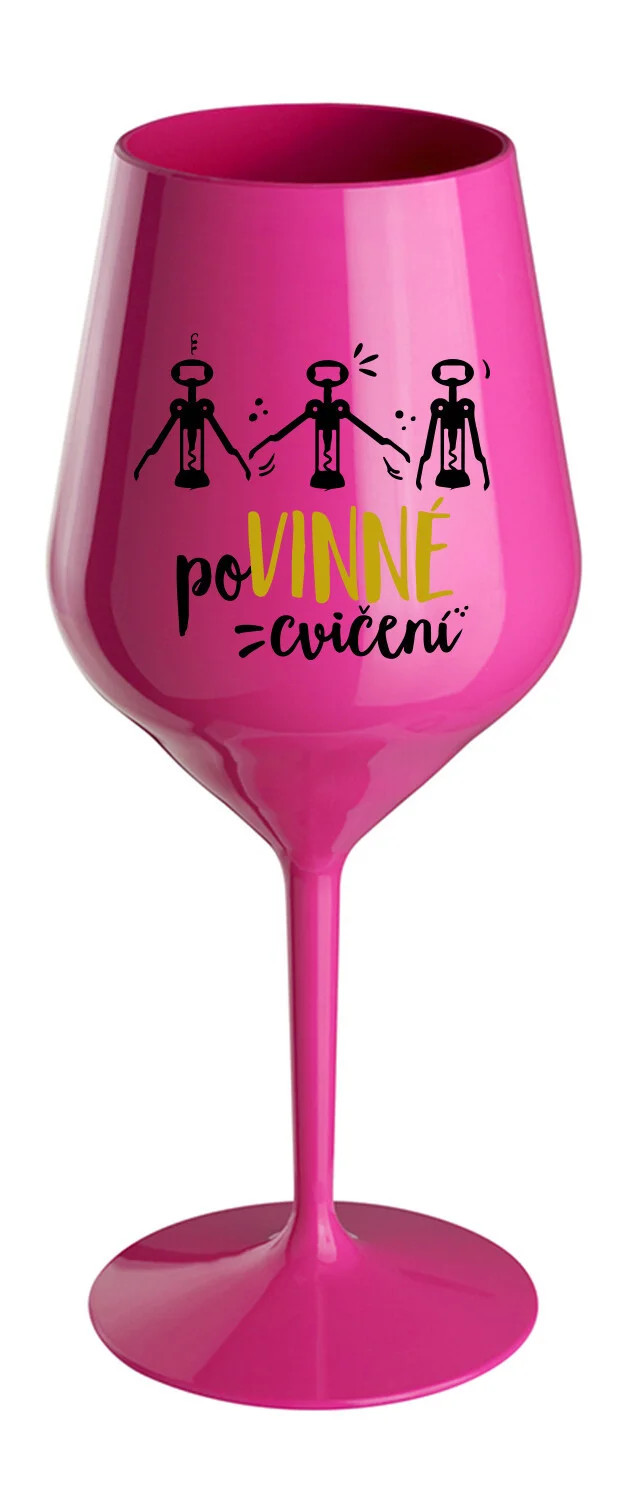 POVINNÉ CVIČENÍ - růžová nerozbitná sklenice na víno 470 ml