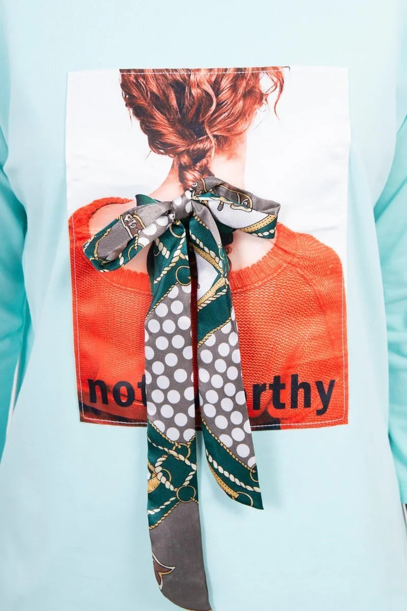 Představujeme vám módní halenku. Halenka má našitou grafiku s nápisem Noteworthy. Tato halenka se vyznačuje módním designem a precizním zpracováním. Ve vašem šatníku rozhodně nesmí chybět. Halenka je vyrobena z vysoce kvalitního materiálu. Univerzální velikost je vhodná pro dámy, které nosí každodenní oblečení ve velikostech S, M nebo L.