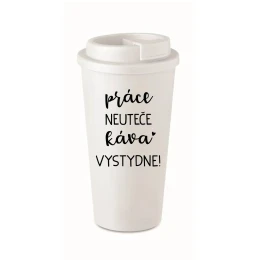 PRÁCE NEUTEČE, KÁVA VYSTYDNE! - bílý termohrnek 475 ml