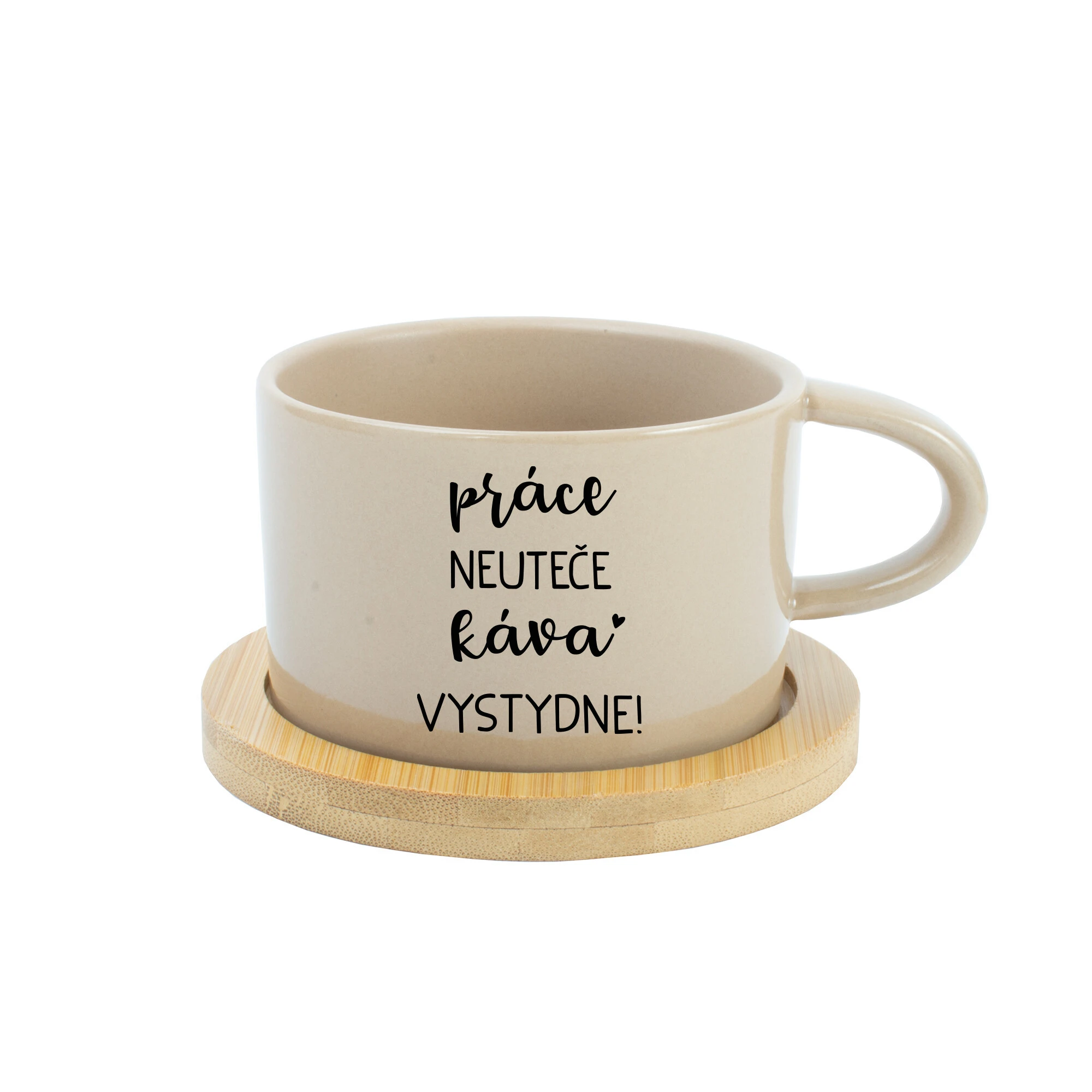Keramický hrnek s potiskem „PRÁCE NEUTEČE, KÁVA VYSTYDNE!“ – 200 ml ☕