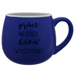 PRÁCE NEUTEČE, KÁVA VYSTYDNE! - modrý keramický hrníček 300 ml