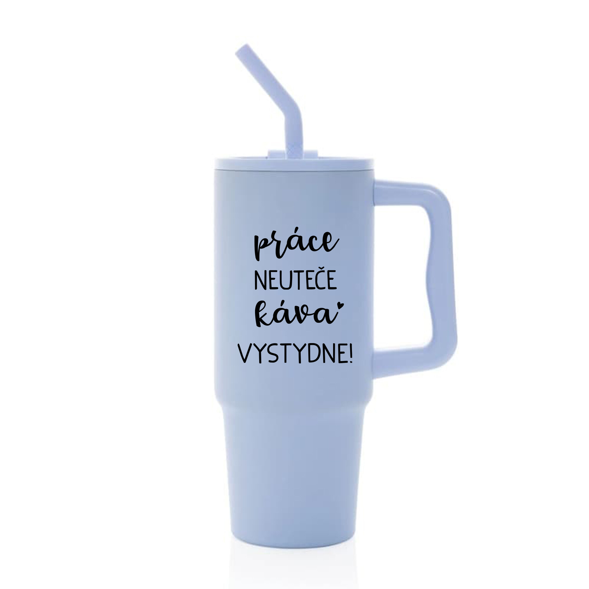 PRÁCE NEUTEČE, KÁVA VYSTYDNE! - světle modrý cestovní termohrnek 900 ml