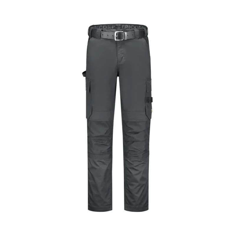 Unisex kalhoty elastický pas, multifunkční kapsy, reflexní prvky, kolena zesílená extra pevným materiálem CORDURA®, možnost prodloužení nohavic, pasují na kolena T90, velikosti 45, 47, 49, 51, 53, 55 jsou prodloužené, pásek není součástí balení, kód produktu Tricorp: 502021