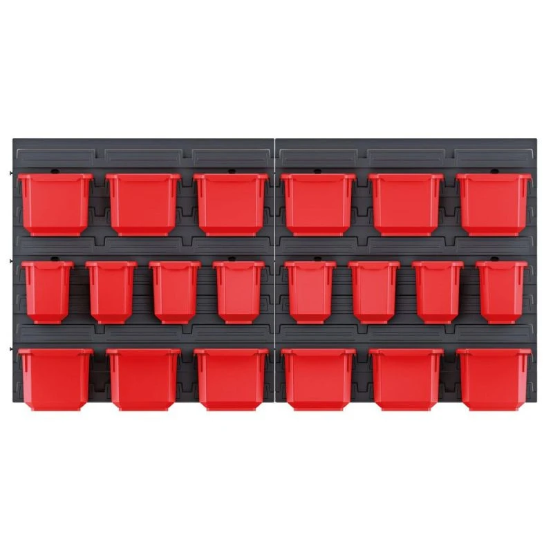 Deska je univerzální, obsahuje celkem 20 kontejnerů o dvou různých kapacitách v sestavě, na kterou můžete kontejnery zavěsit v libovolné konfiguraci. Kontejnery můžete použít v dílně, ve skladu, v garáži nebo třeba ve výtvarném či šicím ateliéru.
