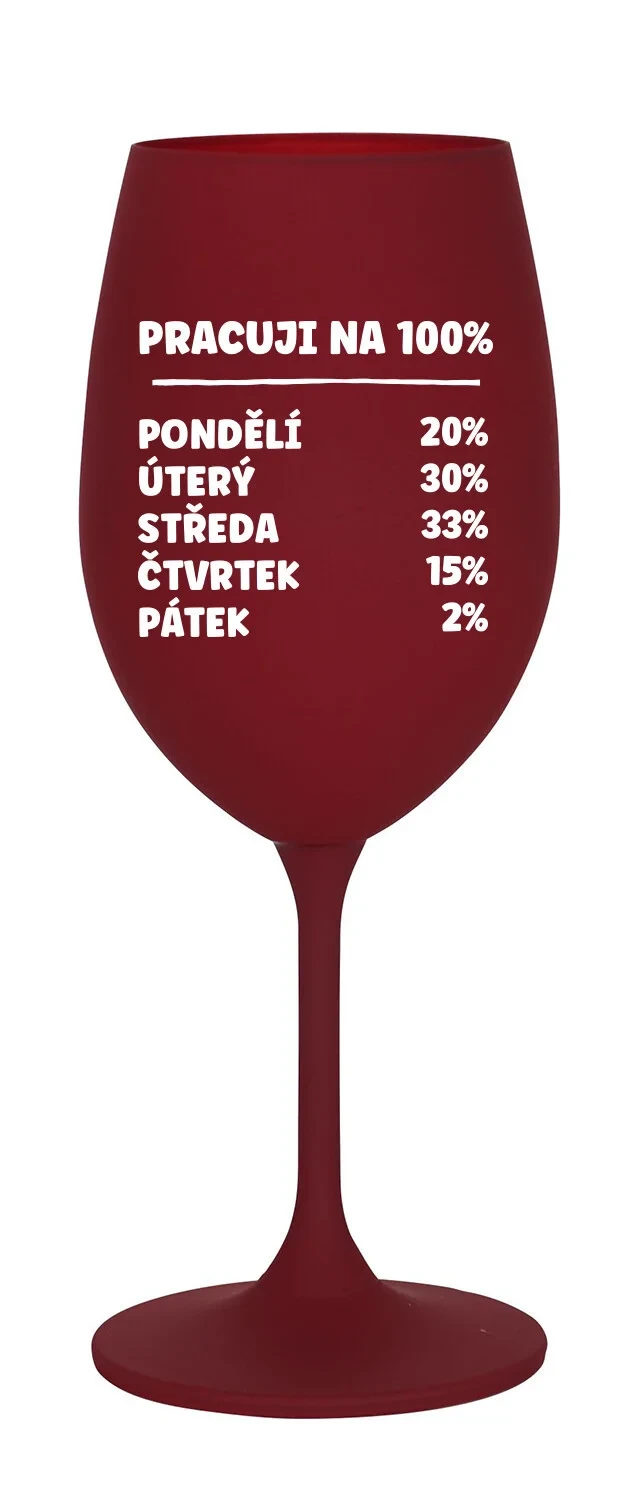 PRACUJI NA 100% - bordó sklenice na víno 350 ml