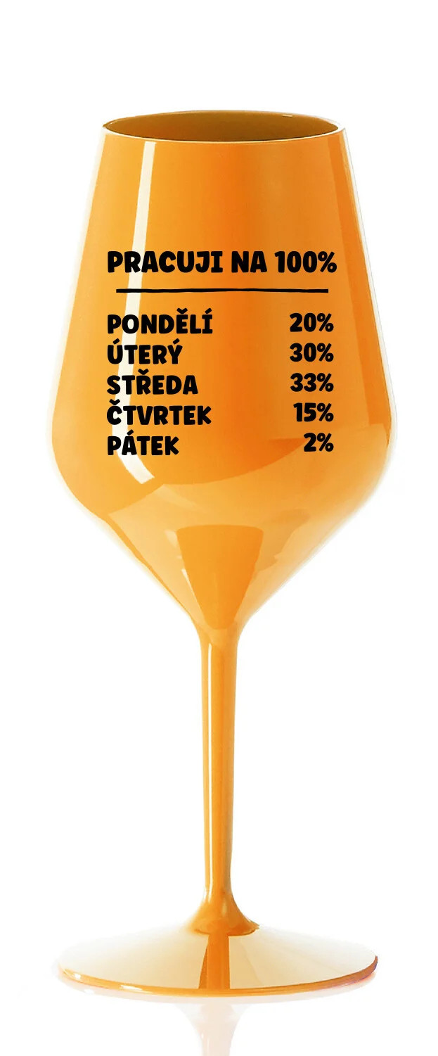 PRACUJI NA 100% - oranžová nerozbitná sklenice na víno 470 ml