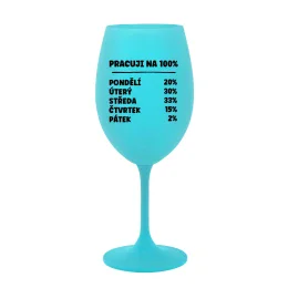 Vinná tyrkysová sklenice s originálním motivem PRACUJI NA 100% je krásným a osobitým dárkem, které ale využijete i Vy sami třeba ve chvílích, kdy si budete chtít zpříjemnit náročný den. Tyto originální vinné sklenice jsou totiž nejen pro výjimečné události, ale i pro běžné večery, které si chcete zpříjemnit sklenkou dobrého vína. Jistě proto potěší každého milovníka vína, i toho, kdo si umí svůj život vychutnat plnými doušky.