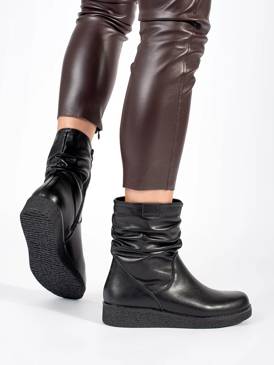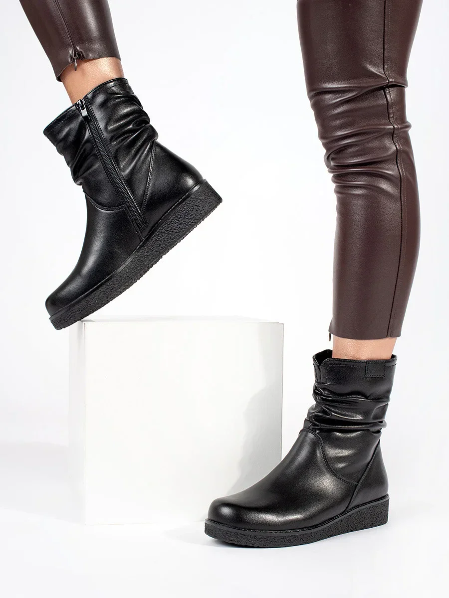 Přidání recenze k Praktické černé dámské kotníčkové boty na klínku