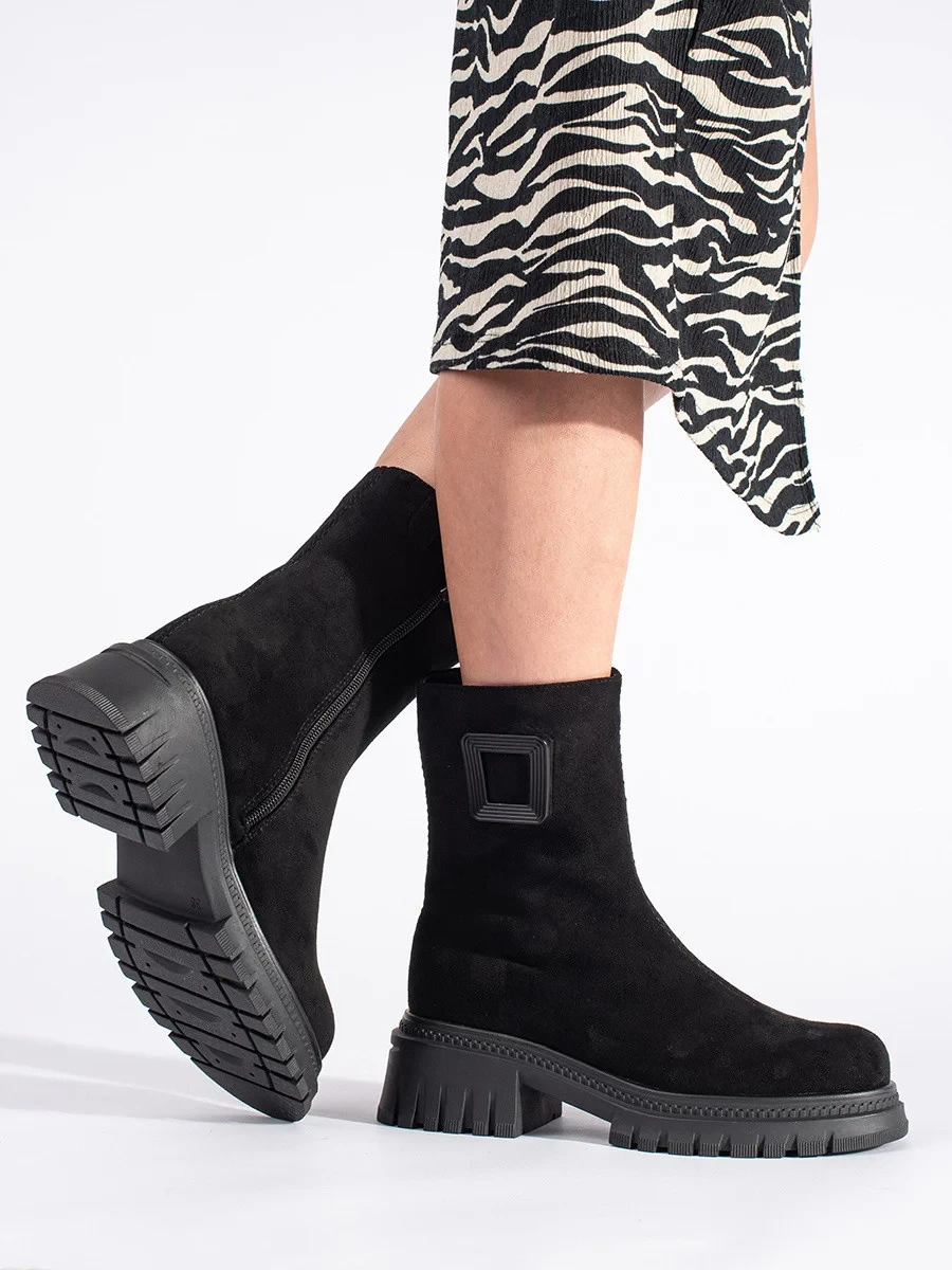 Praktické černé dámské kotníčkové boty na plochém podpatku