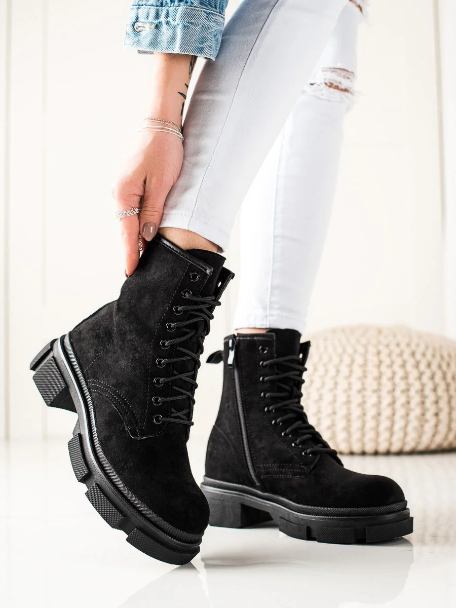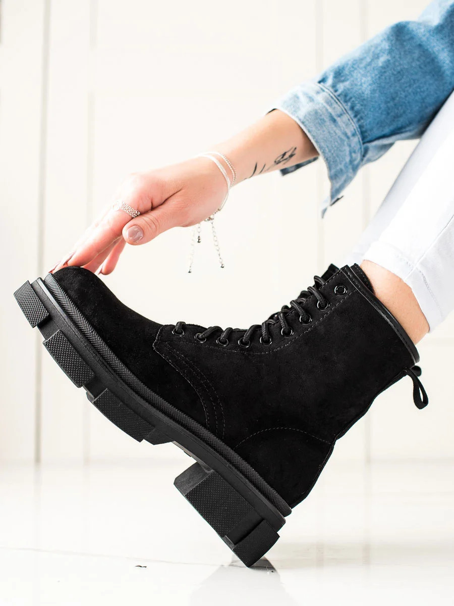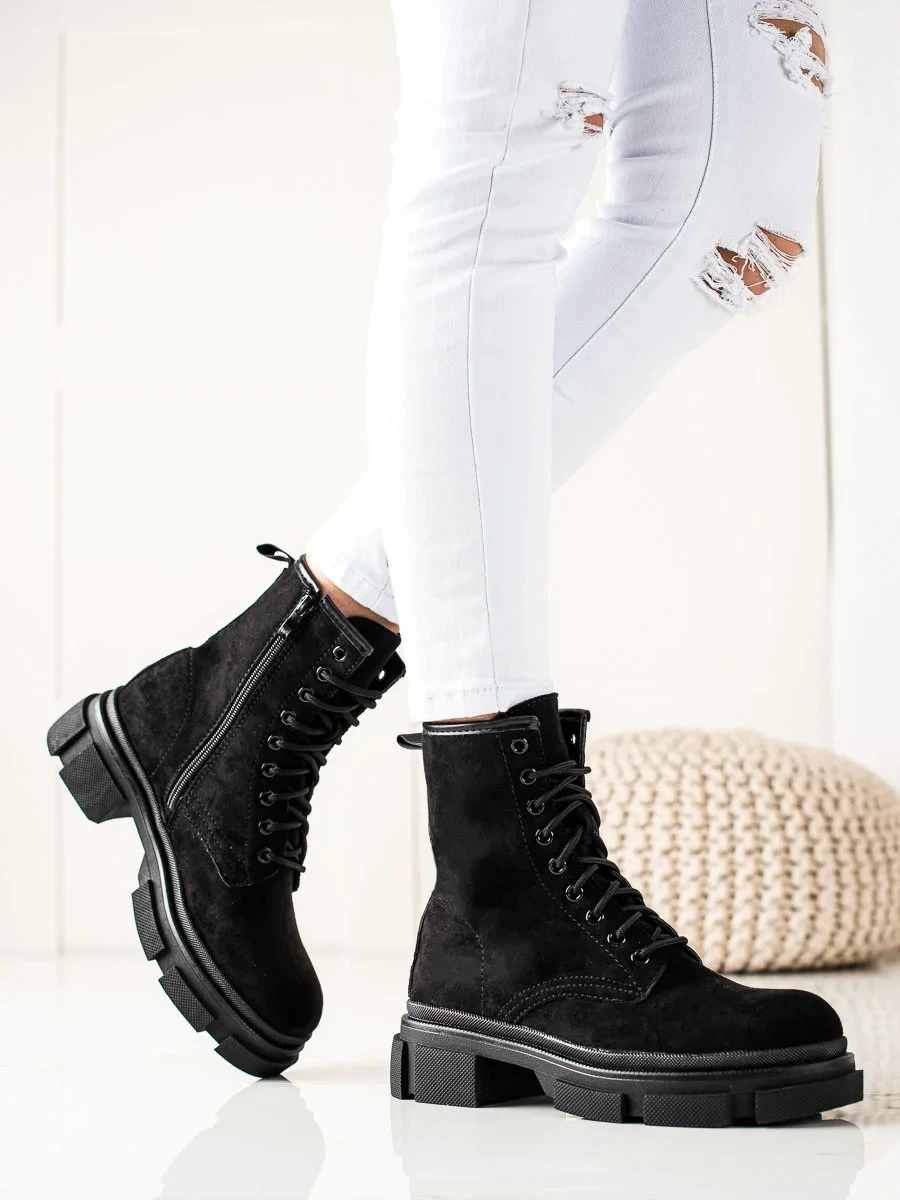 Přidání recenze k Praktické černé dámské kotníčkové boty na plochém podpatku