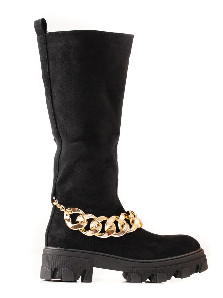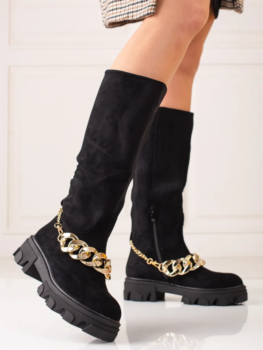 Přidání recenze k Praktické dámské kozačky černé na plochém podpatku