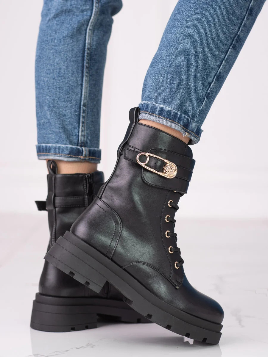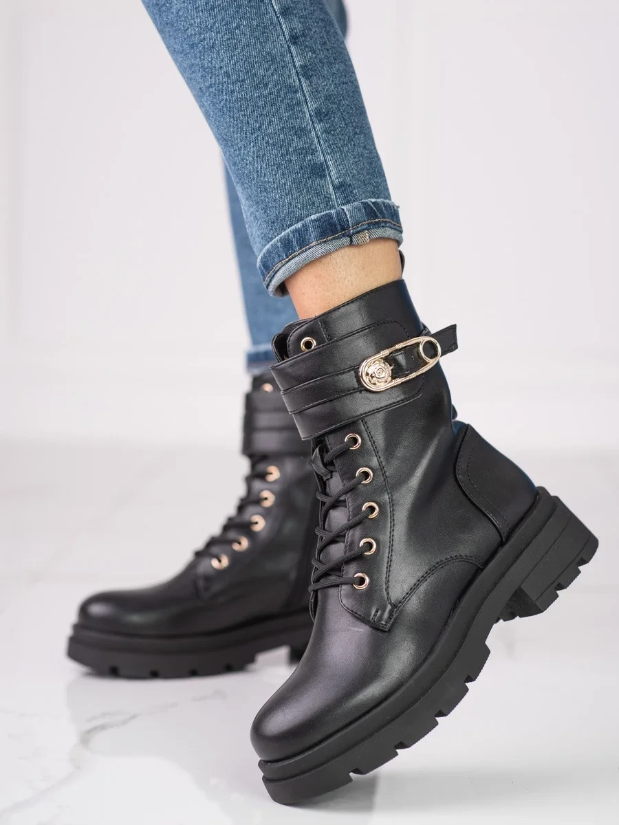 Přidání recenze k Praktické kotníčkové boty dámské černé na plochém podpatku