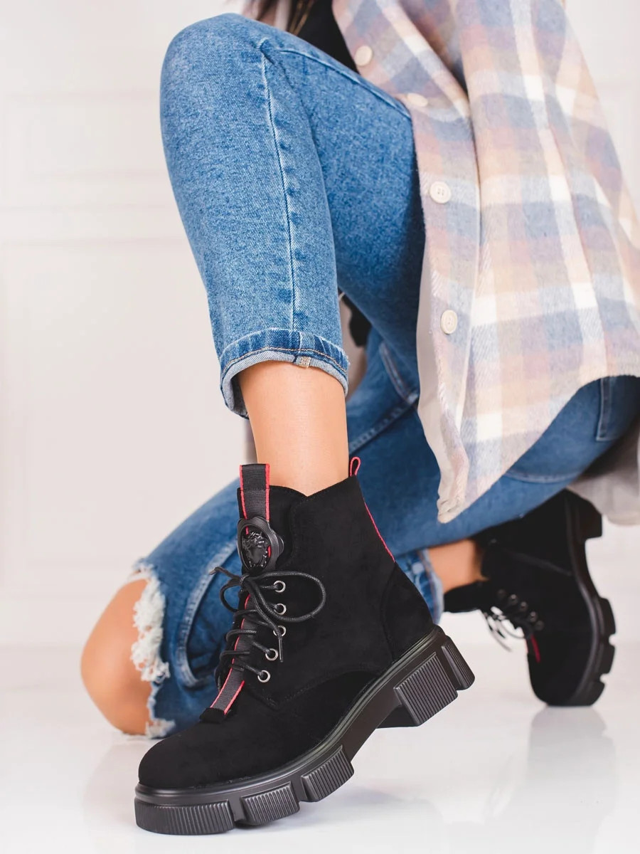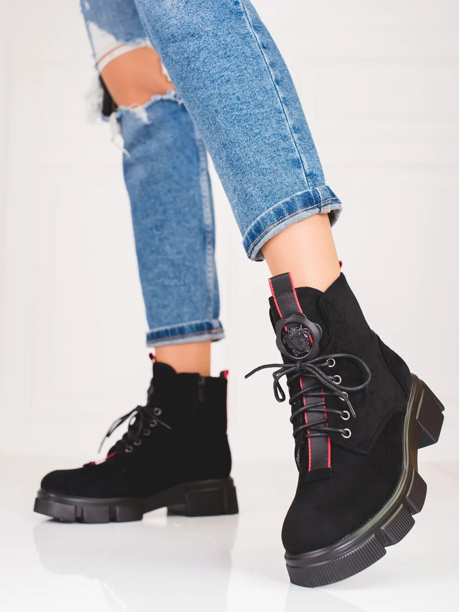 Přidání recenze k Praktické kotníčkové boty dámské černé na plochém podpatku