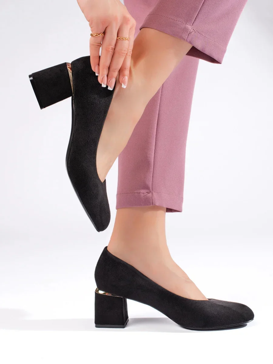 Přidání recenze k Praktické lodičky černé dámské na širokém podpatku