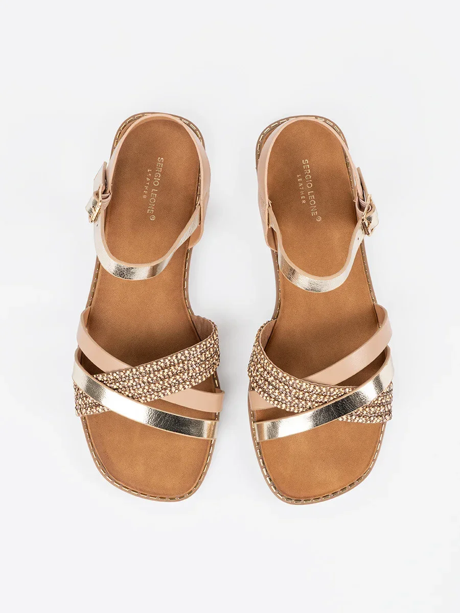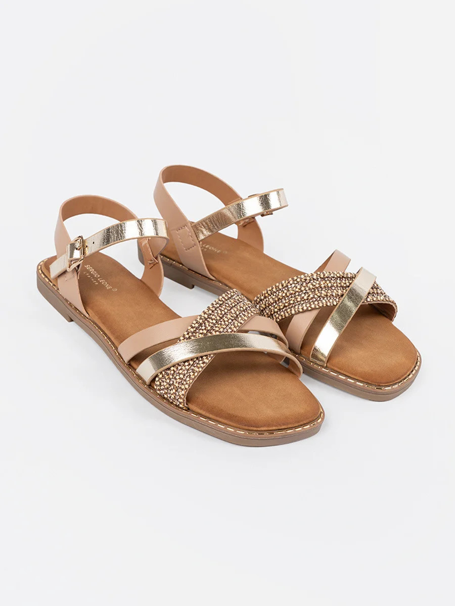 Přidání recenze k Praktické sandály dámské zlaté na plochém podpatku