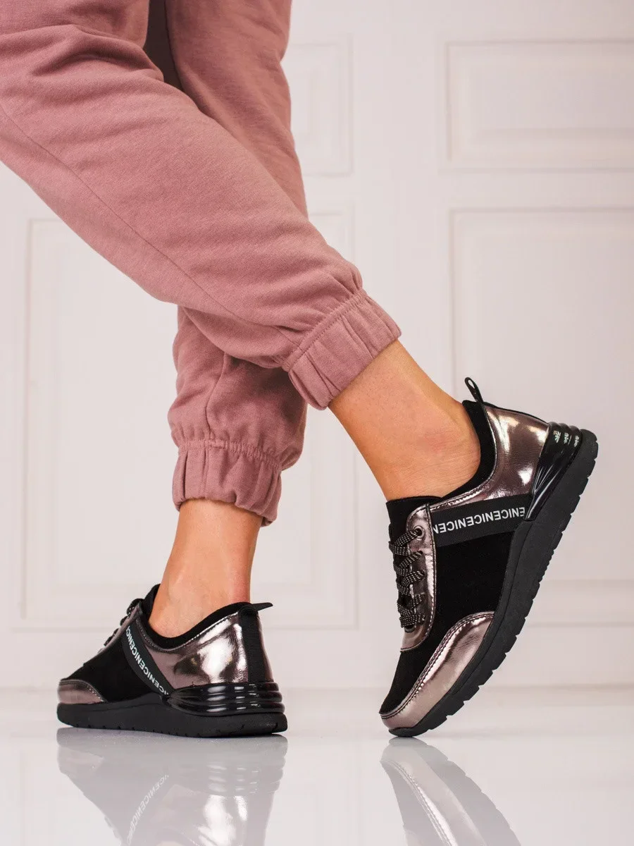 Praktické šedo-stříbrné tenisky dámské bez podpatku