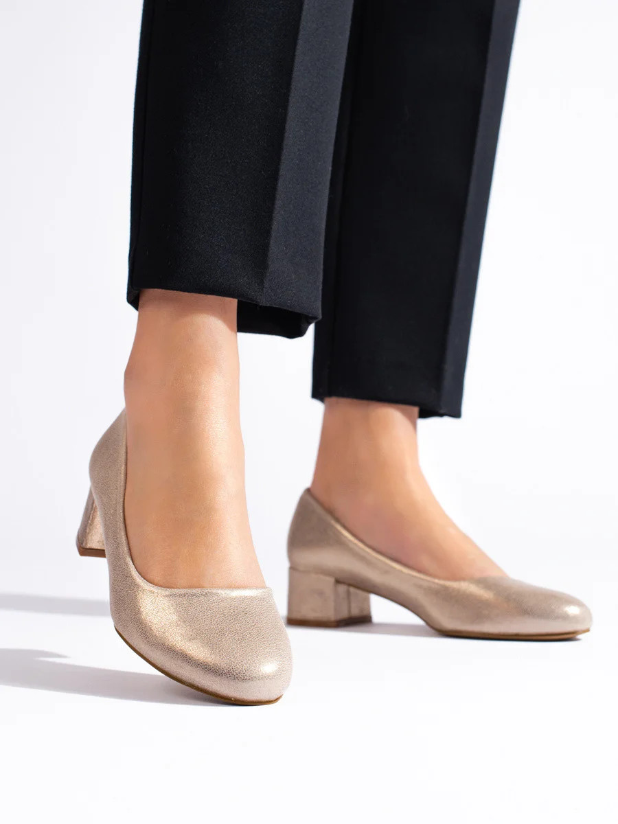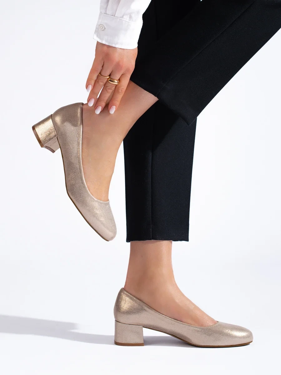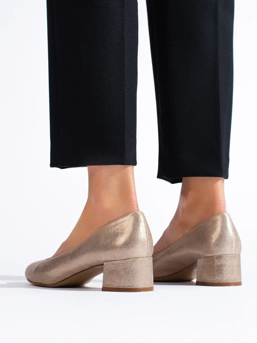 Praktické zlaté lodičky dámské na plochém podpatku