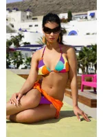 Barevné bikiny jsou jistě tou správnou volbou na pláž. Tato souprava obsahuje podprsenku, nízký spodní díl a hladké mini pareo o délce 22 cm, které dohromady tvoří krásný komplet. Exploze barev a známý, osvědčený ženský střih. Podprsenka má vyztužené košíčky, jejichž vycpávky lze z modelu také vyjmout. Ramínka a spodní lem se pohodlně zavazují. Spodní díl se zavazuje také na bocích na bocích. Pareo se vám na pláži jistě bude hodit. Složení: 82 % polyamid, 18 % elastan.
